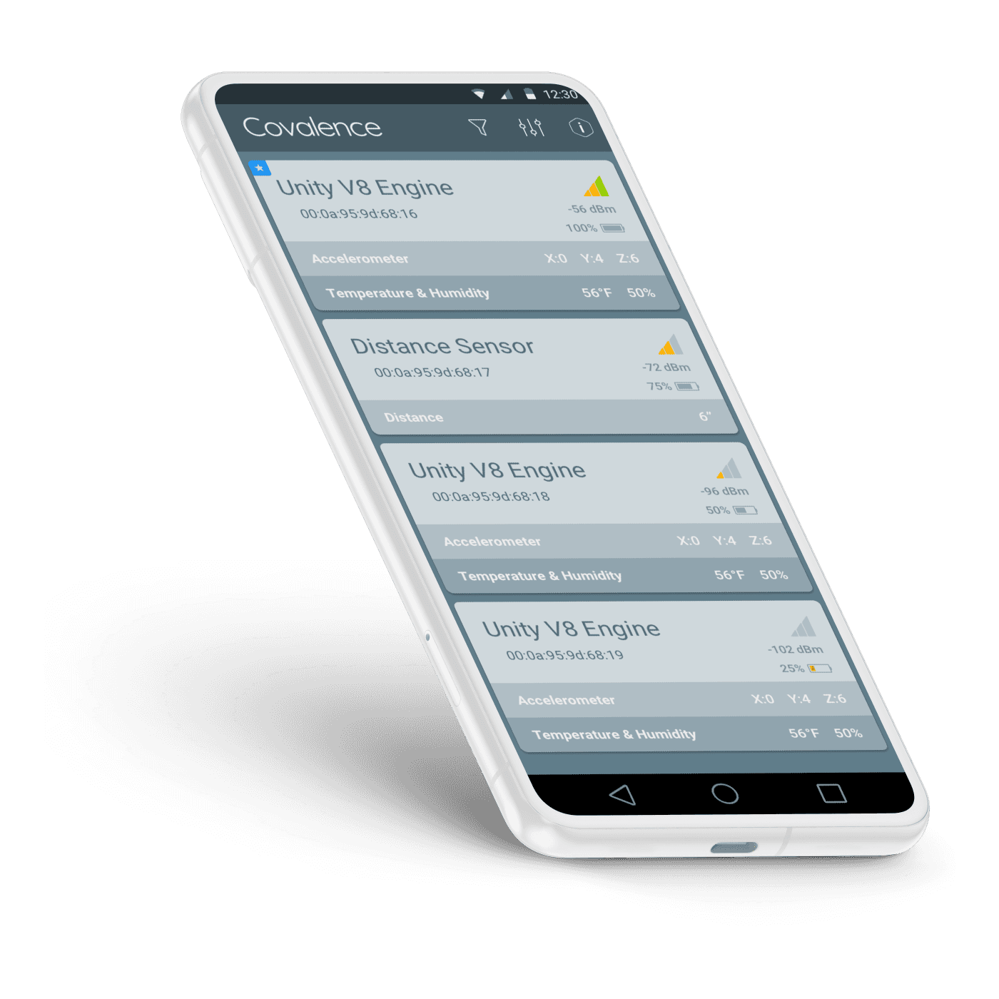 Covalence, a native iOS and Android application designed to revolutionize the way you test and analyze data from multiple hardware sensors. This powerful BLE (Bluetooth Low Energy) app streamlines the entire process, saving you time and effort while providing the insights you need to optimize your product development.